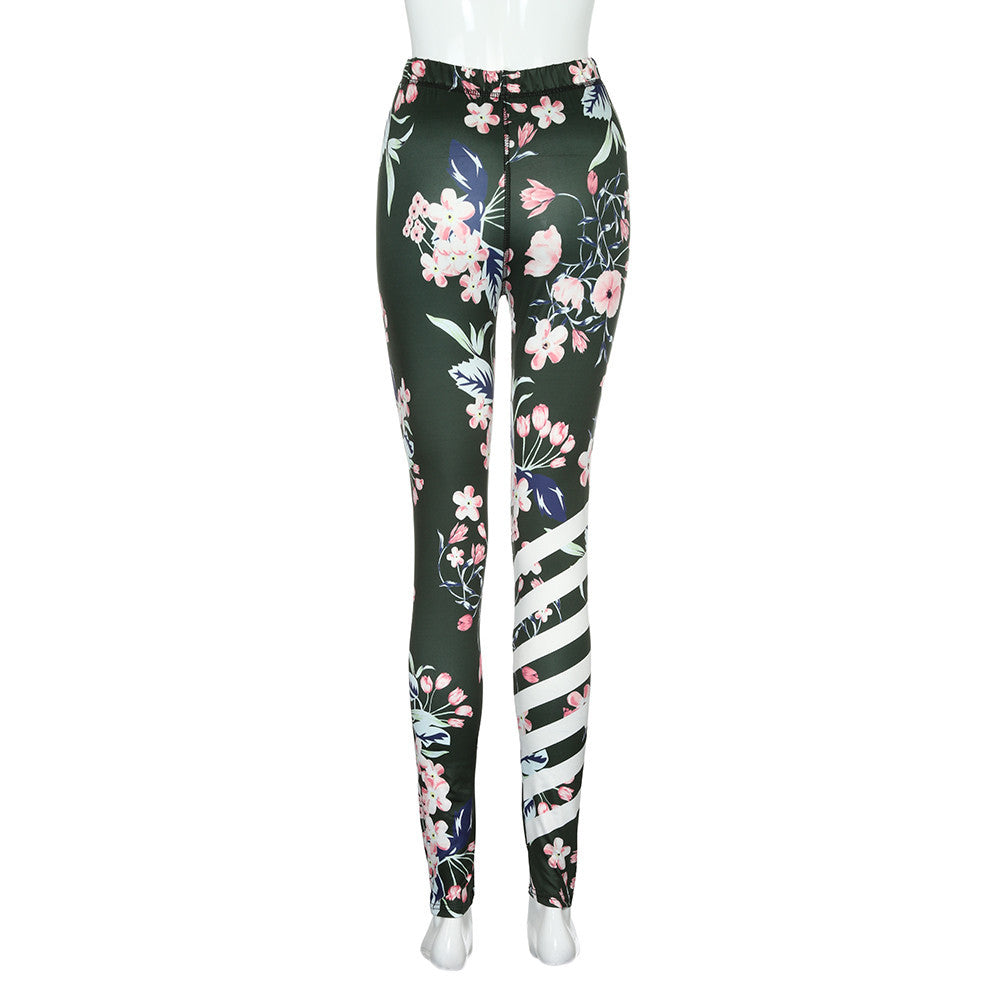 Womens Floral Printed Yoga Workout Gym Leggings Fitness Sports Striped Pants